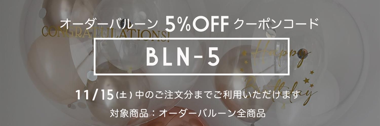 月に1度のオーダーバルーン クーポンコード BLN-5 を