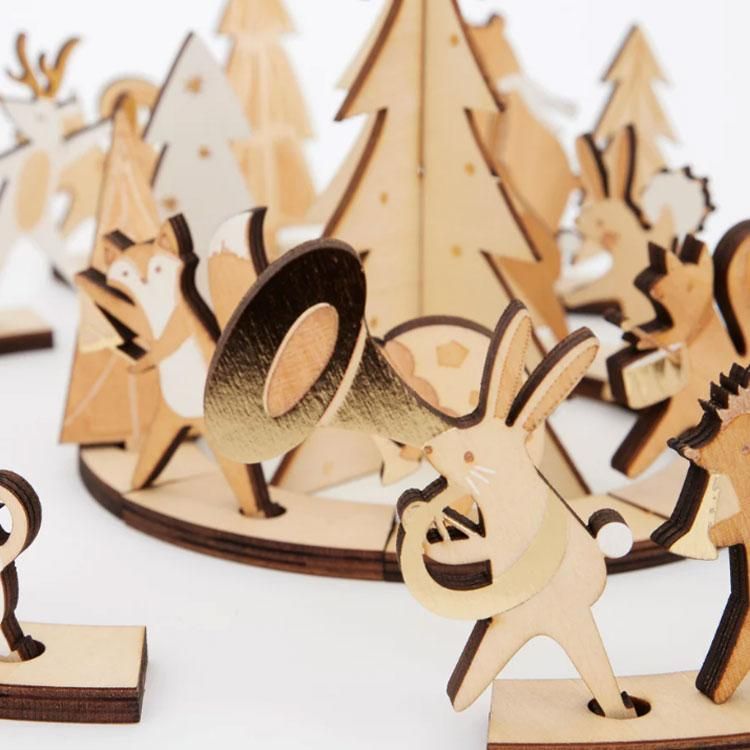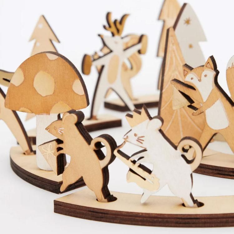 木彫りの動物たちやクリスマスツリーが出てきます。